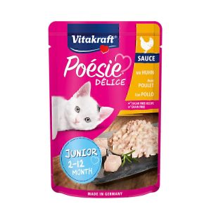 پوچ بچه گربه ویتاکرافت با طعم مرغ در سس Vitakraft Wet Cat Food With Chicken وزن 85 گرم