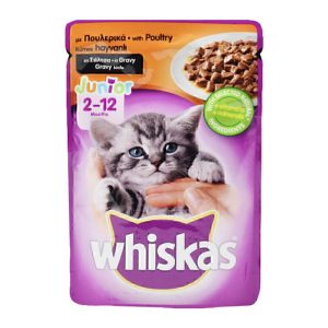 پوچ بچه گربه ویسکاس با طعم گوشت پرندگان Whiskas Junior With Poultry in Gravy وزن 85 گرم