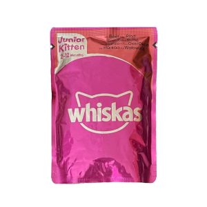 پوچ بچه گربه ویسکاس با طعم گوشت گاو Whiskas Junior Kitten With Beef وزن 100 گرم
