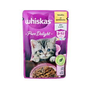 پوچ بچه گربه ویسکاس با طعم گوشت مرغ و بوقلمون Whiskas Junior Pure Delight Chicken and Turkey in jelly بسته 4 عددی