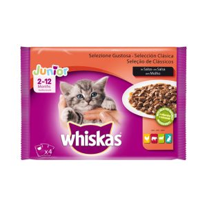 پوچ بچه گربه ویسکاس در چهار طعم Whiskas Junior Meaty Selection in Gravy بسته 4 عددی