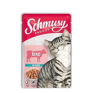 پوچ گربه اشموزی با طعم گوشت گاو در سس Schmusy Wet Cat Food With Beef وزن 100 گرم