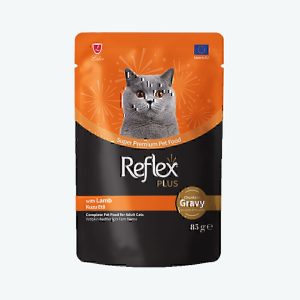 پوچ گربه عقیم شده رفلکس پلاس با طعم گوشت بره در سس Reflex Plus Chunks In Gravy With Lamb وزن 85 گرم