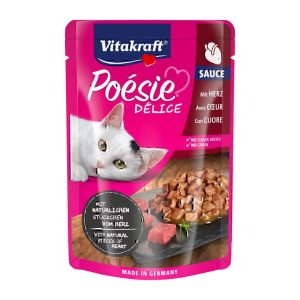 پوچ گربه ویتاکرافت با تکه های گوشت قلب در سس Vitakraft Cat Wet Food With Heart Meat وزن 85 گرم