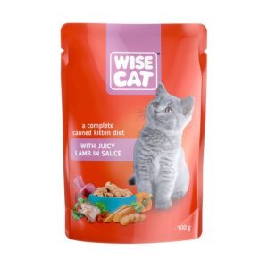 پوچ گربه وایز کت کیتن با طعم گوشت بره در سس Wise Cat Pouch With Lamb In Sauce وزن 100 گرم
