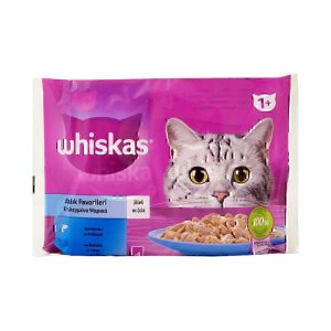 پوچ گربه ویسکاس با طعم ماهی تن و سالمون Whiskas Fish Favourites Salmon and Tuna in Jelly بسته 4 عددی