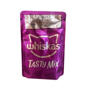 پوچ گربه ویسکاس با طعم ماهی سالمون و هویج Whiskas Tasty Mix Cat Pouch With Salmon & Carrots In Gravy وزن 85 گرم