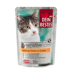 پوچ مخصوص گربه های حساس دین بستس با طعم مرغ در ژله Dein Bestes Chicken in Jelly وزن 100 گرم