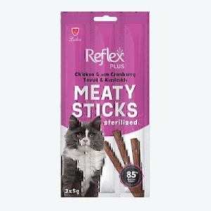 تشویقی مدادی گربه عقیم شده رفلکس با طعم مرغ و کرنبری Reflex Meaty Sticks Sterilised With Chicken & Cranberry وزن 15 گرم