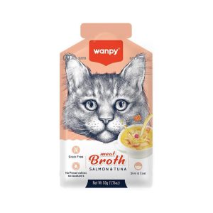 سوپ گربه ونپی با طعم ماهی تن و سالمون Wanpy Cat Meat Broth With Tuna And Salmon وزن 50 گرم