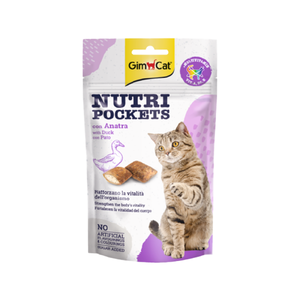 اسنک تشویقی نوتری گربه جیم کت با طعم اردک GimCat Nutri Pockets Duck وزن 60 گرم