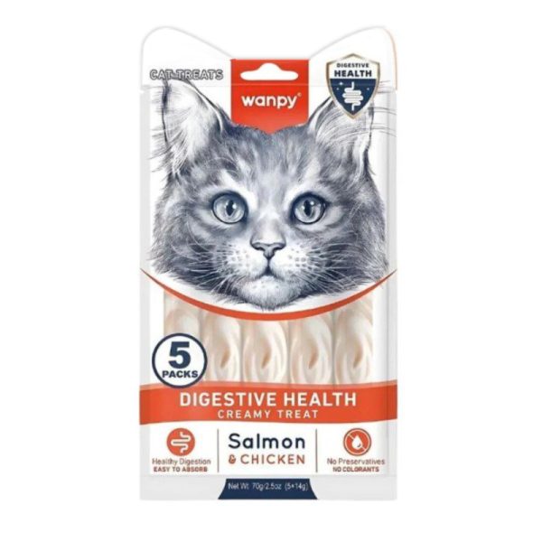 بستنی درمانی گربه ونپی مخصوص مشکلات گوارشی با طعم مرغ و ماهی سالمون Wanpy Digestive Health Creamy Treat بسته 5 عددی