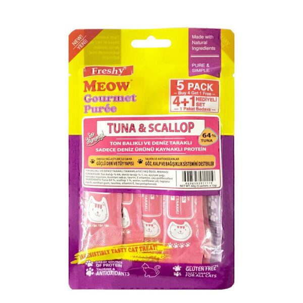 بستنی گربه با طعم ماهی تن و گوش ماهی فرشی Freshy Puree Tuna & Scallop بسته 5 عددی
