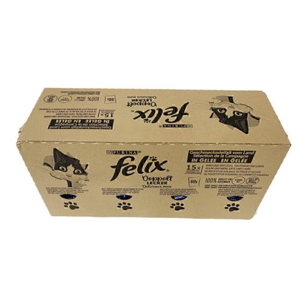 بسته پوچ گربه فلیکس با 4 طعم میکس در ژله Felix Mix Pack In Jelly بسته 60 عددی