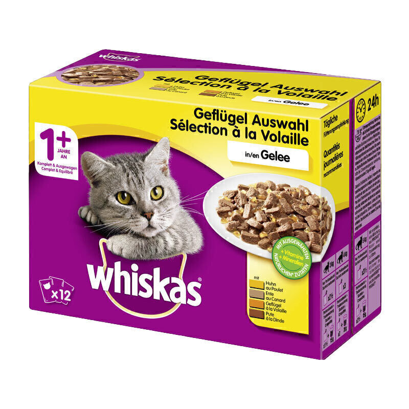 بسته پوچ گربه ویسکاس با طعم گوشت پرندگان Whiskas Pouch Poultry Selection مجموعه 12 عددی