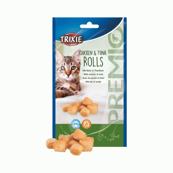 تشویقی گربه تریکسی با طعم مرغ و تن ماهی Trixie Premio Chicken & Tuna Rolls وزن 50 گرم