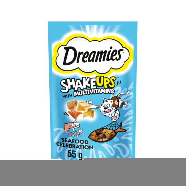 تشویقی گربه مولتی ویتامین دریمیز با طعم ماهی و میگو Dreamies ShakeUps With Multivitamins وزن 55 گرم