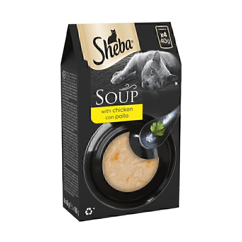 سوپ گربه شیبا با طعم مرغ Sheba Soup With Chicken بسته 4 عددی