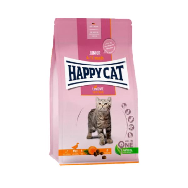 غذای خشک بچه گربه با طعم اردک هپی کت HappyCat Junior Farm Duck وزن 4 کیلوگرم