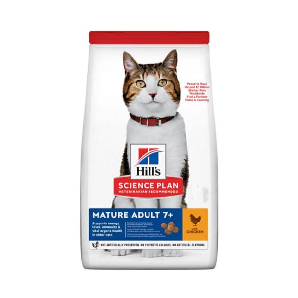 غذای خشک گربه بالای هفت سال هیلز با طعم مرغ Hill’s Mature Adult Cat Food With Chicken وزن 1.5 کیلوگرم