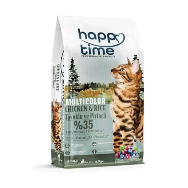 غذای خشک گربه بالغ هپی تایم با طعم مرغ و برنج Happy Time Multicolor وزن 15 کیلوگرم