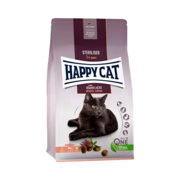 غذای خشک گربه با طعم ماهی سالمون هپی کت HappyCat Sterilised atlantic Salmon وزن 10 کیلوگرم