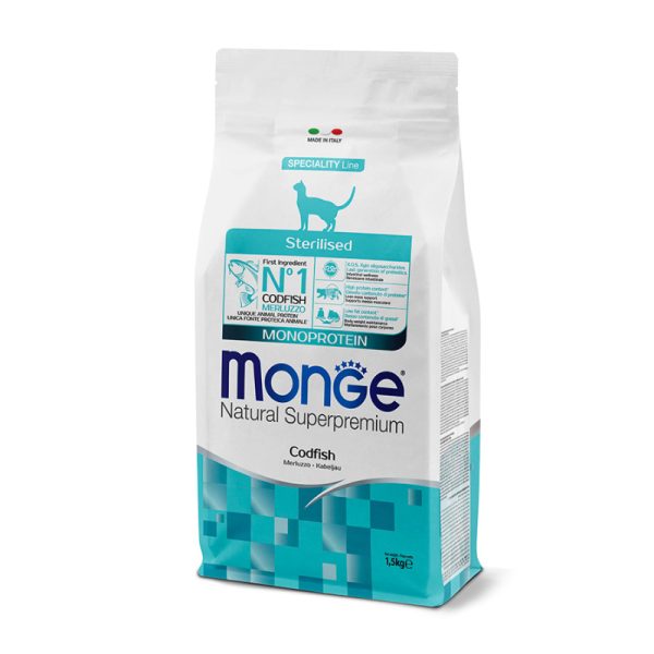غذای خشک گربه عقیم شده مونژ با طعم ماهی کاد Monge Sterilised Cat Food With Codfish وزن 1.5 کیلوگرم