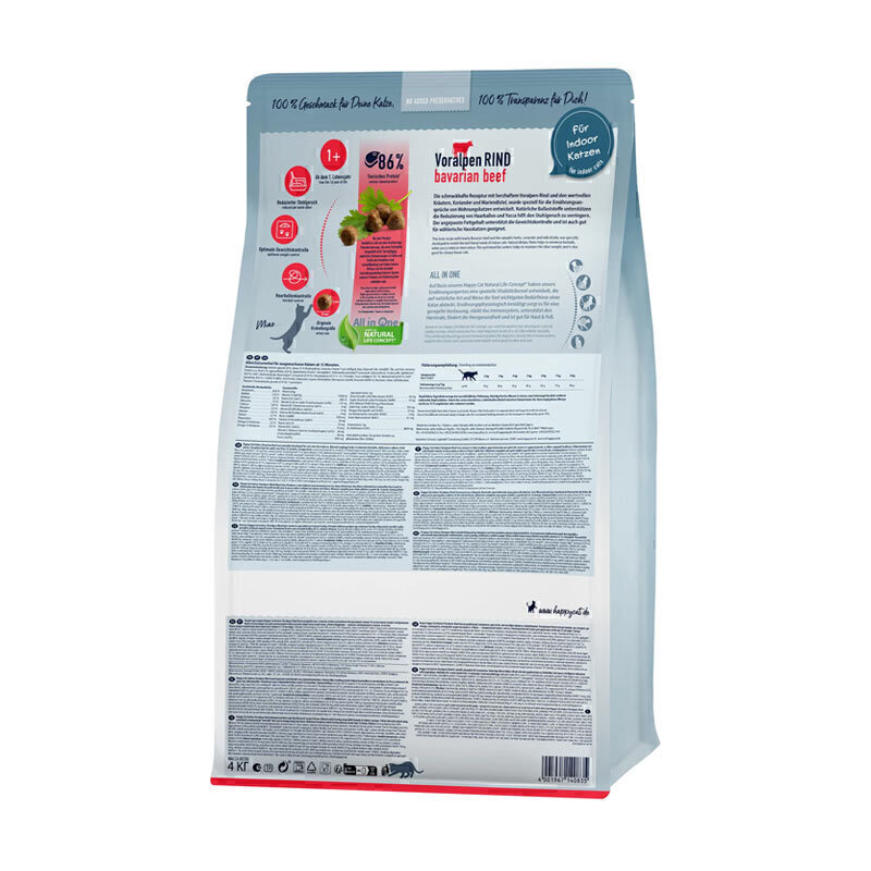 غذای خشک گربه هپی کت با طعم گوشت گاو Adult Indoor Voralpen-Rind وزن 1.3 کیلوگرم