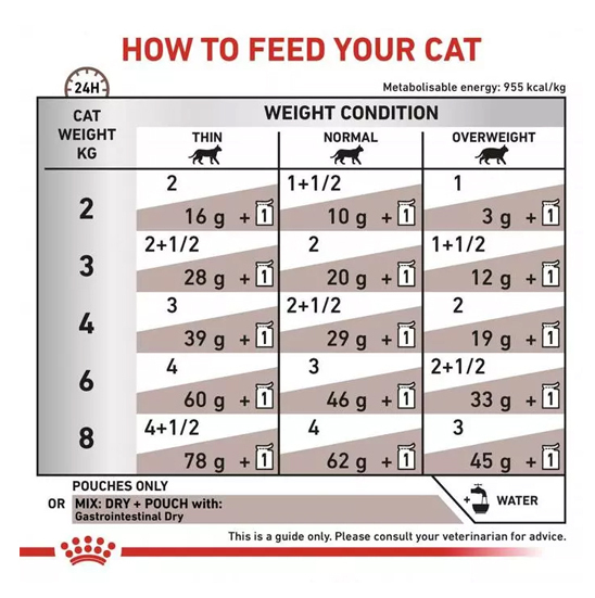 از استفادهی این غذا برای گربههایی که دچار آنسفالوپاتی کبدی، Lymphangiectasia – exudative enteropathy و پانکراتیت هستند خودداری شود