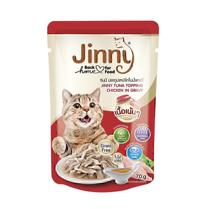 پوچ گربه جرهای جینی با طعم مرغ و تاپینگ ماهی تن در آبگوشت JerHigh Jinny Cat Pouch With Tuna & Chicken in Gravy وزن 70 گرم