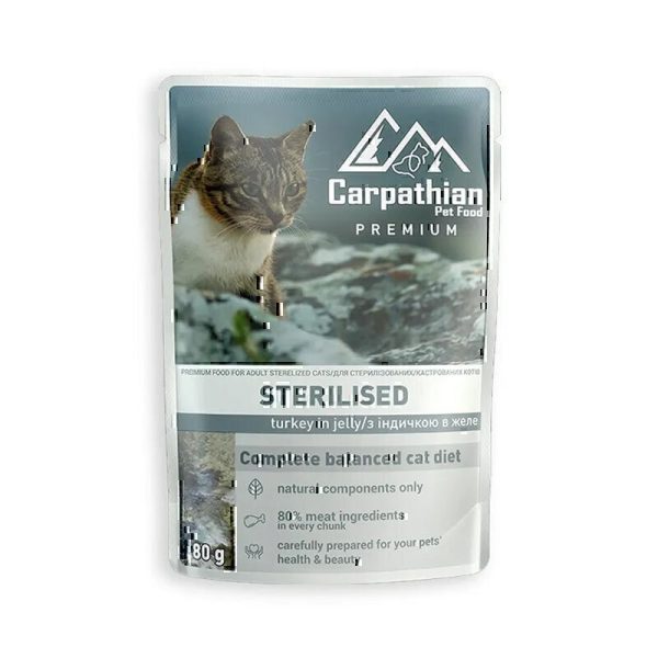 پوچ گربه عقیم شده کارپاتین ژلهای با طعم بوقلمون Carpathian Sterilised Turkey in Jelly وزن 80 گرم