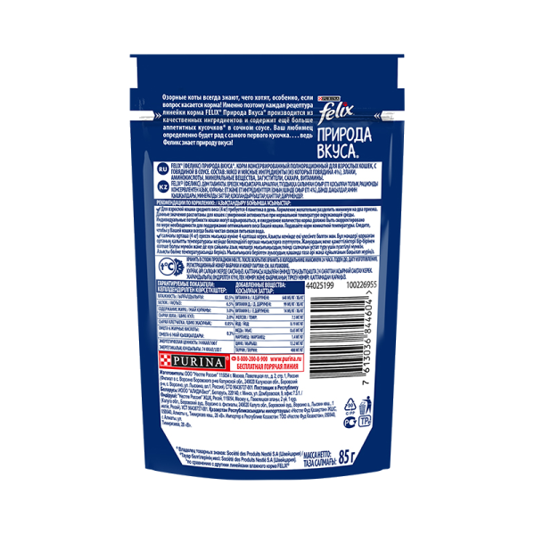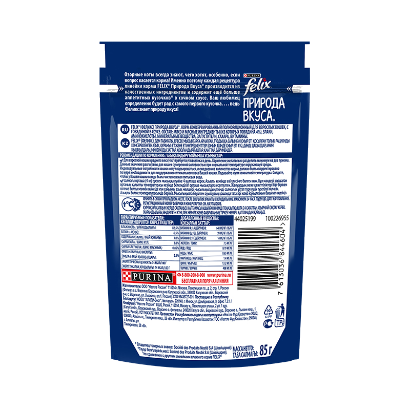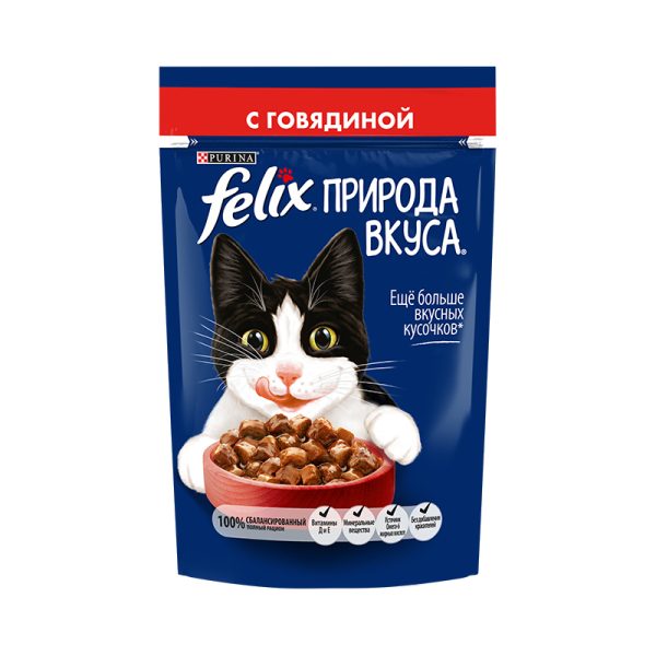 پوچ گربه فلیکس با طعم گوشت گاو در سس Felix Nature of flavor with beef in sauce وزن 75 گرم