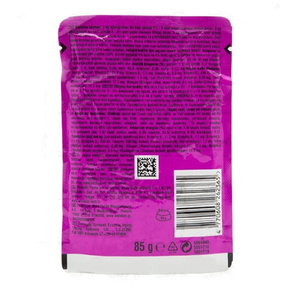 پوچ گربه ویسکاس با طعم میکس بره و بوقلمون در سس Whiskas Tasty Mix With Lamb & Turkey in Gravy وزن 85 گرم