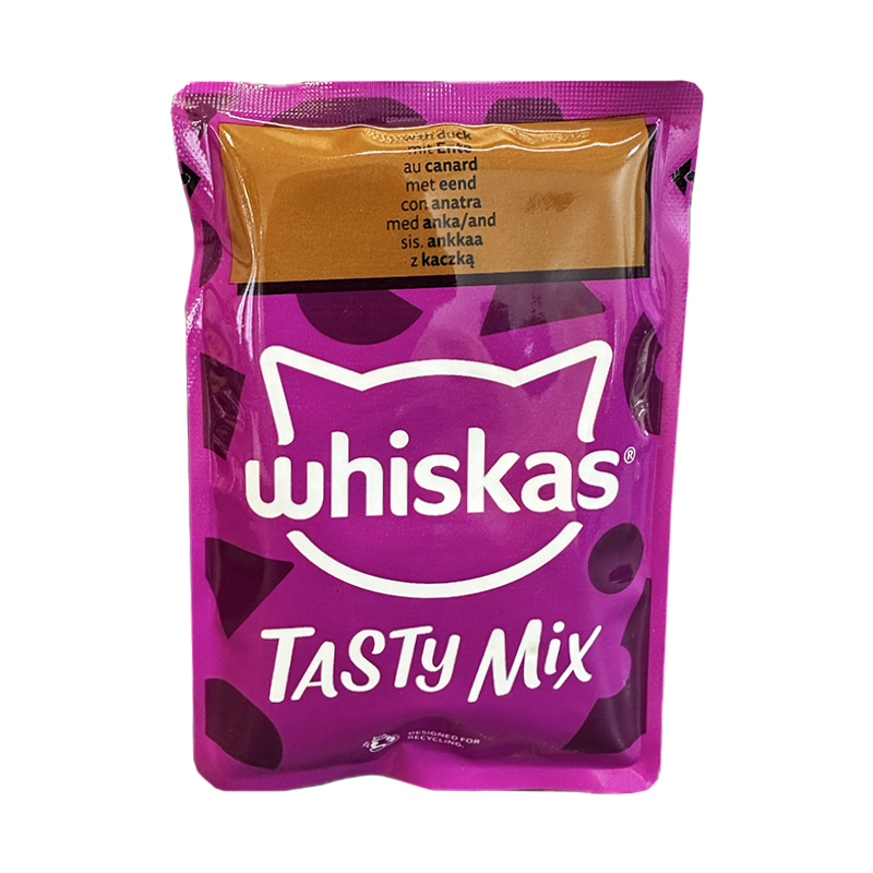 پوچ گربه ویسکاس با طعم گوشت اردک Whiskas Tasty Mix Cat Pouch With Duck In Gravy وزن 85 گرم