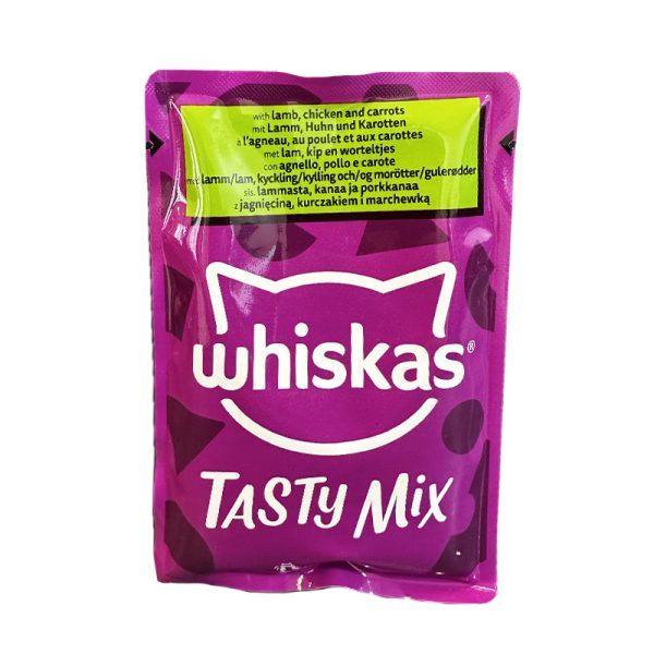 پوچ گربه ویسکاس با طعم گوشت بره، مرغ و هویج Whiskas Tasty Mix Cat Pouch With Lamb,Chicken & Carrots In Gravy وزن 85 گرم