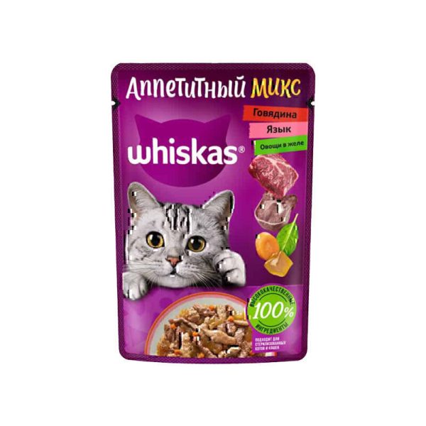 پوچ گربه ویسکاس با طعم گوشت گاو و زبان Whiskas Beef & Tongue وزن 75 گرم