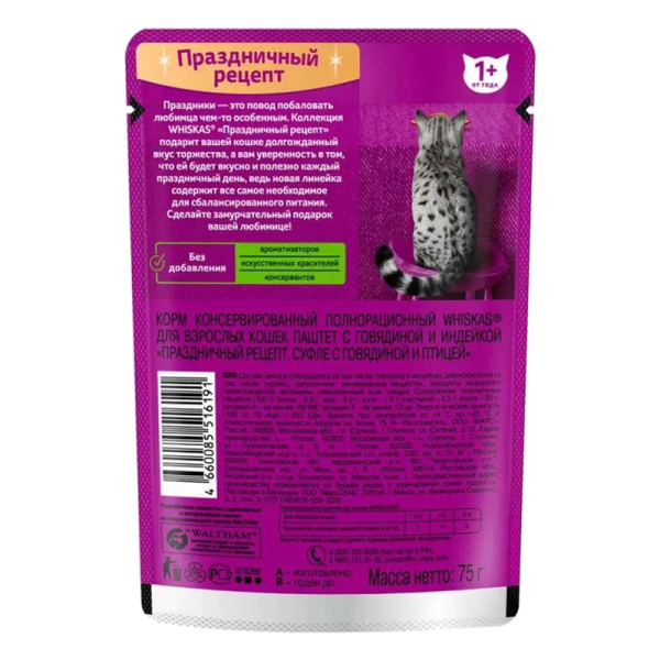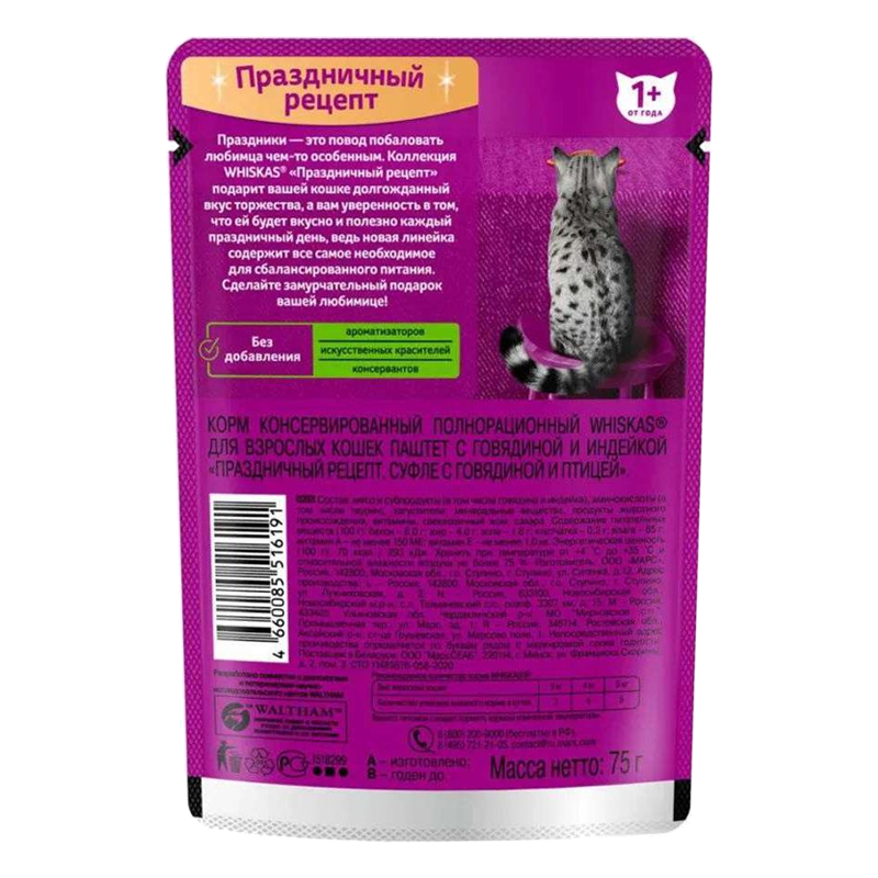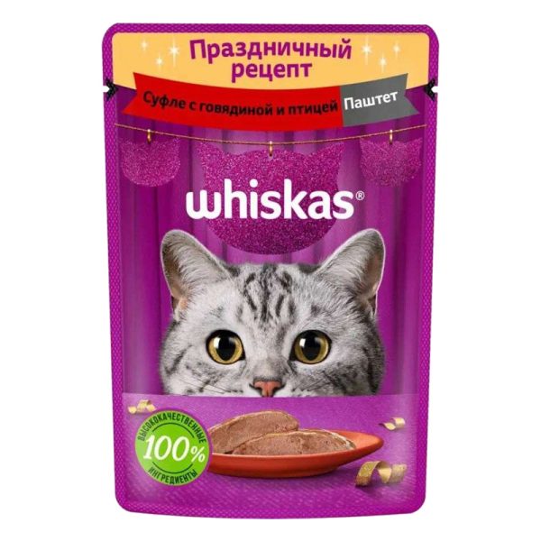 پوچ گربه ویسکاس با طعم گوشت گاو و پرندگان Whiskas pate with beef and poultry وزن 75 گرم