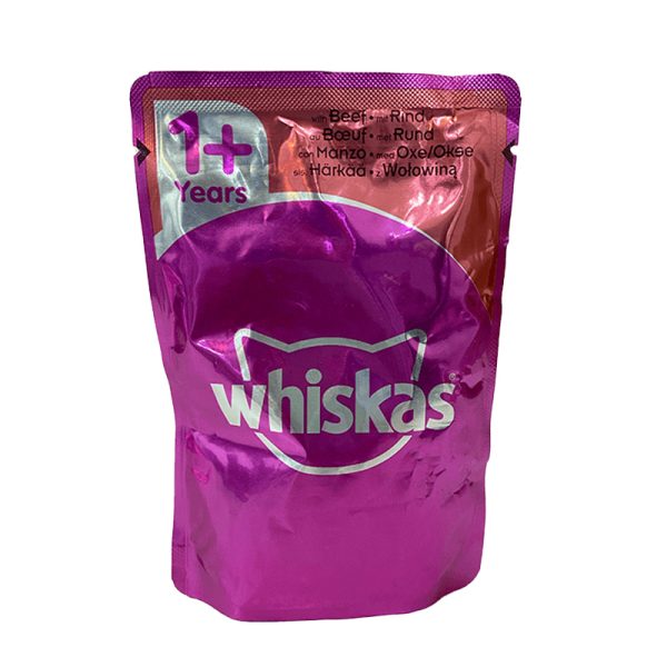 پوچ گربه ویسکاس با طعم گوشت گاو Whiskas Pouch Beef وزن 100 گرم