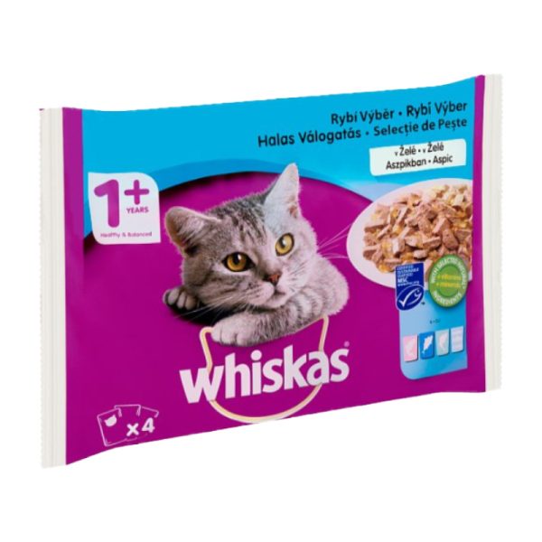 پوچ گربه ویسکاس در چهار طعم Whiskas Fish Selection in Jelly بسته 4 عددی
