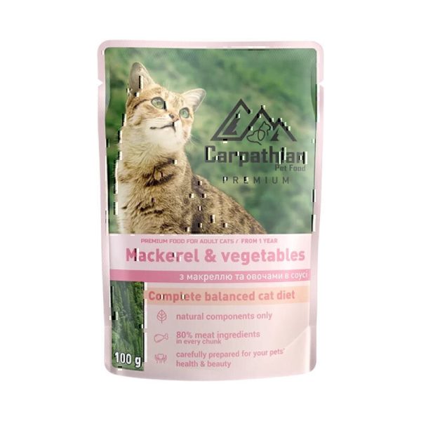پوچ گربه کارپاتین با طعم ماهی ماکرل و سبزیجات Carpathian Cat wet Food With Mackerel And Vegetables وزن 100 گرم