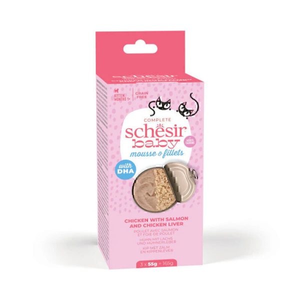 کنسرو غذای بچه گربه شسیر با طعم مرغ و جگر مرغ Schesir Kitten Food With Chicken And Chicken Liver بسته 3 عددی