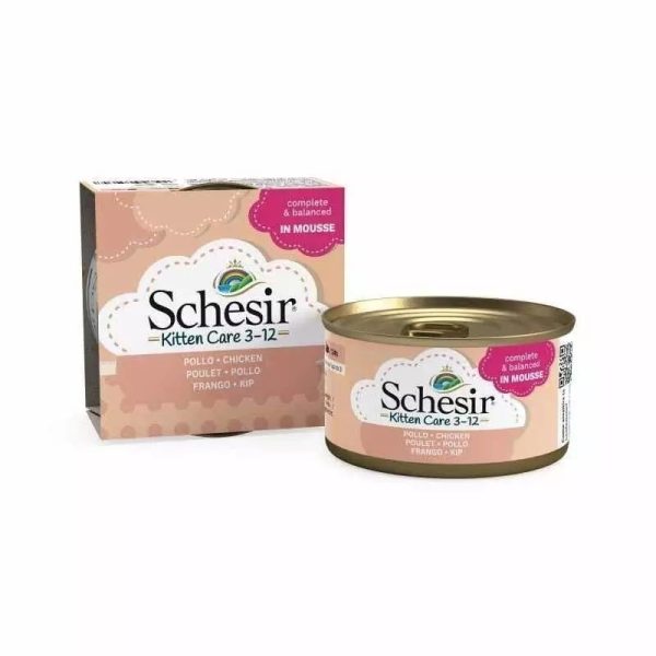 کنسرو غذای بچه گربه شسیر با طعم مرغ Schesir Kitten Food With Chicken in Mousse وزن 85 گرم