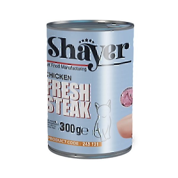 کنسرو غذای گربه استیک با طعم مرغ شایر Shayer Fresh Steak Chicken وزن 300 گرم