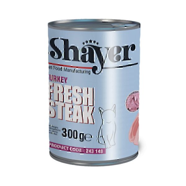 کنسرو غذای گربه استیک با طعم گوشت بوقلمون شایر Shayer Fresh Steak Turkey وزن 300 گرم