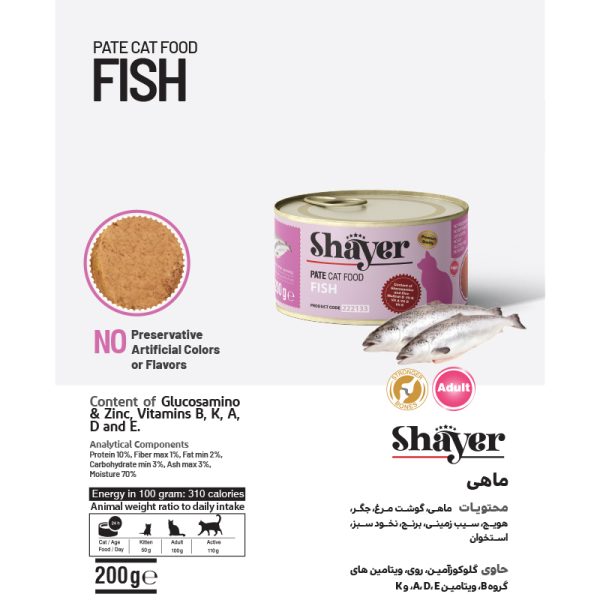 کنسرو غذای گربه با طعم ماهی شایر Shayer Pate With Fish وزن 200 گرم