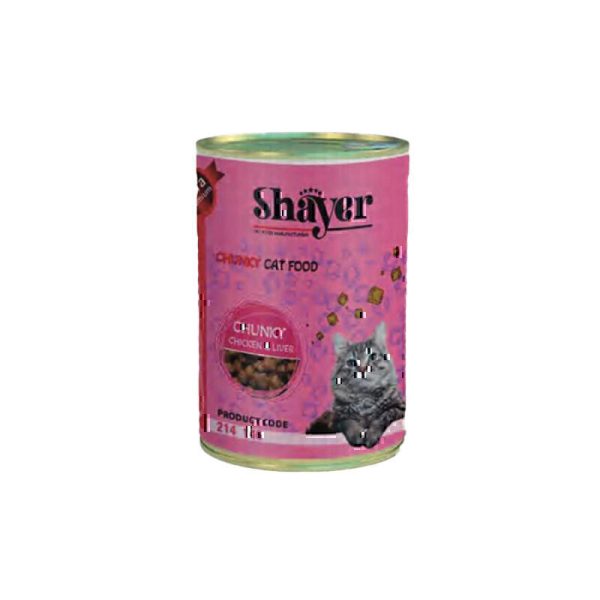 کنسرو غذای گربه با طعم مرغ و جگر شایر Shayer Chunky Chicken & Liver وزن 400 گرم