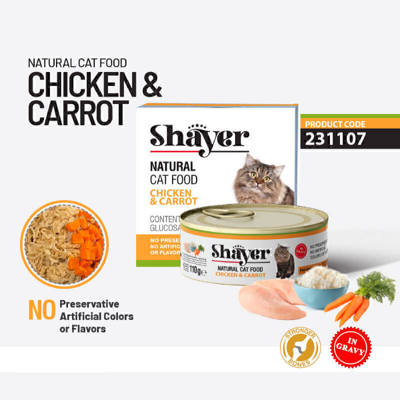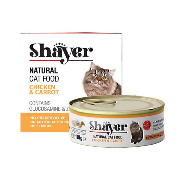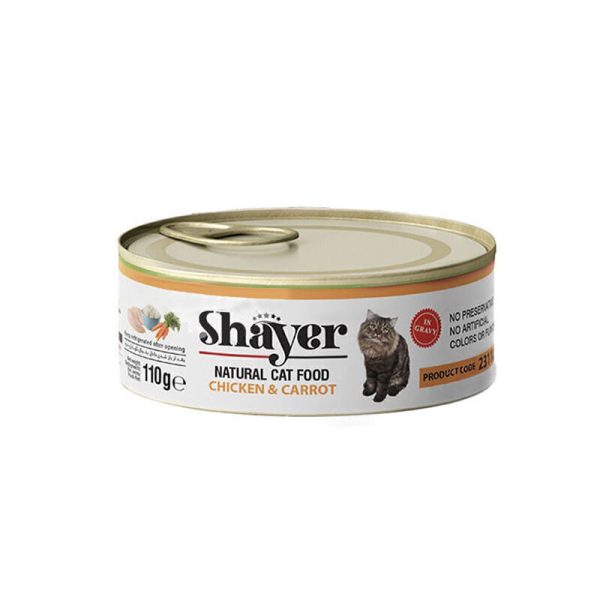 کنسرو غذای گربه با طعم مرغ و هویج شایر Shayer Natural With Chicken & Carrot در سس گوشت وزن 110 گرم