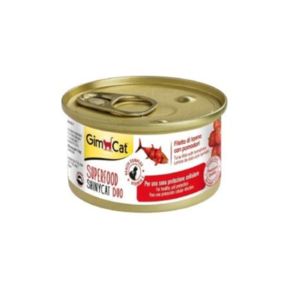 کنسرو غذای گربه جیم کت با طعم ماهی تن و گوجه فرنگی GimCat Tuna Fillet and Tomato وزن 70 گرم