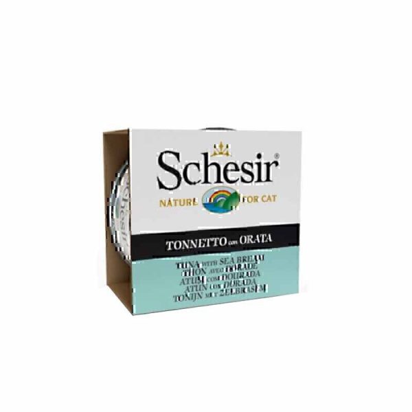 کنسرو غذای گربه شسیر با طعم ماهی تن و ماهی شانک Schesir Tuna & Sea Bream وزن 85 گرم