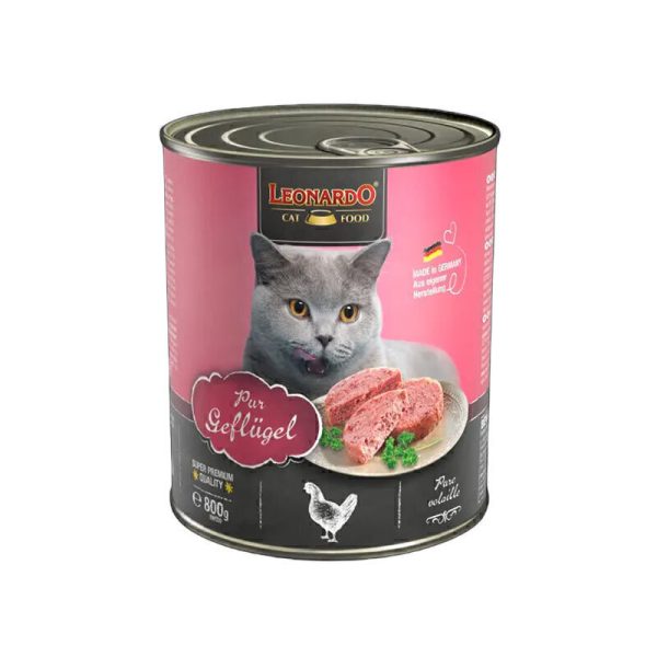 کنسرو غذای گربه لئوناردو با طعم گوشت پرندگان Leonardo Pure Poultry وزن 800 گرم